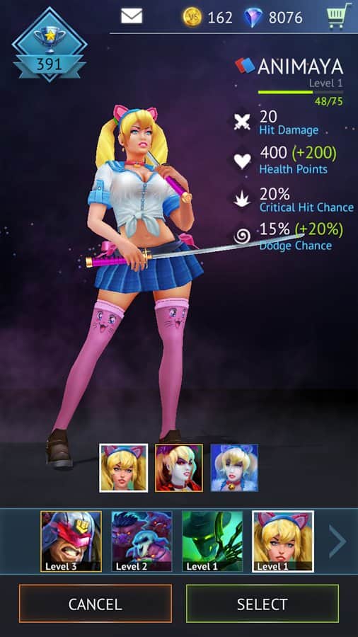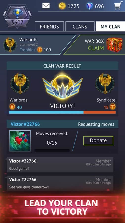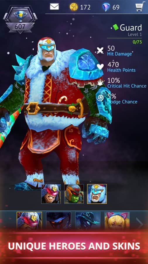 Versus - PVP duels – игра на андроид, где вы будете участвовать в эпических сражениях с другими игроками. Выбирайте себе героя из представленных в игре персонажей и начинайте бой. Каждый герой в этой игре помимо уникальной внешности обладает неповторимыми способностями, которые пригодятся вам в игре. Учитывайте сильные и слабые стороны своего оппонента и докажите всем что вы лучший боец. Наносите разрушительные удары своему противнику и побеждайте в динамичных схватках. Поднимайтесь все выше в таблице лидеров и повышайте рейтинг своего игрока. Создавайте непобедимые кланы и приводите их к победе.