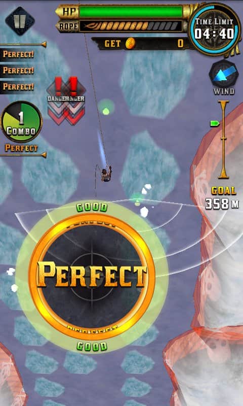 Vertical Cliff - Японский разработчик решил попробовать новый тип аркадой игры. Данная андроид игра показывает то, что у них получилось. Мы не раз видели, как люди в художественных фильмах, как люди спускались по веревки со скалы. В этой игре вам предстоит подобное. Но чтобы придать интереса и остросюжетности вам будут мешать различные препятствия, такие как падающие камни и различные большие птицы, которые живут в горной местности.
