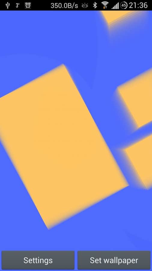 Very Simple Live Wallpaper - Простые и в тоже время стильные живые обои на андроид. Различные геометрические фигуры разного цвета будут радовать вас своим присутствием на вашем мобильном гаджете. Для установки обоев, нажмите на экран долгим тапом на рабочем столе, заходите в раздел «обои», выбираем режим «Живые обои» и находим там наши живые обои. Для тонкой настройки присутствует раздел с различными визуальными изменениями обоев.