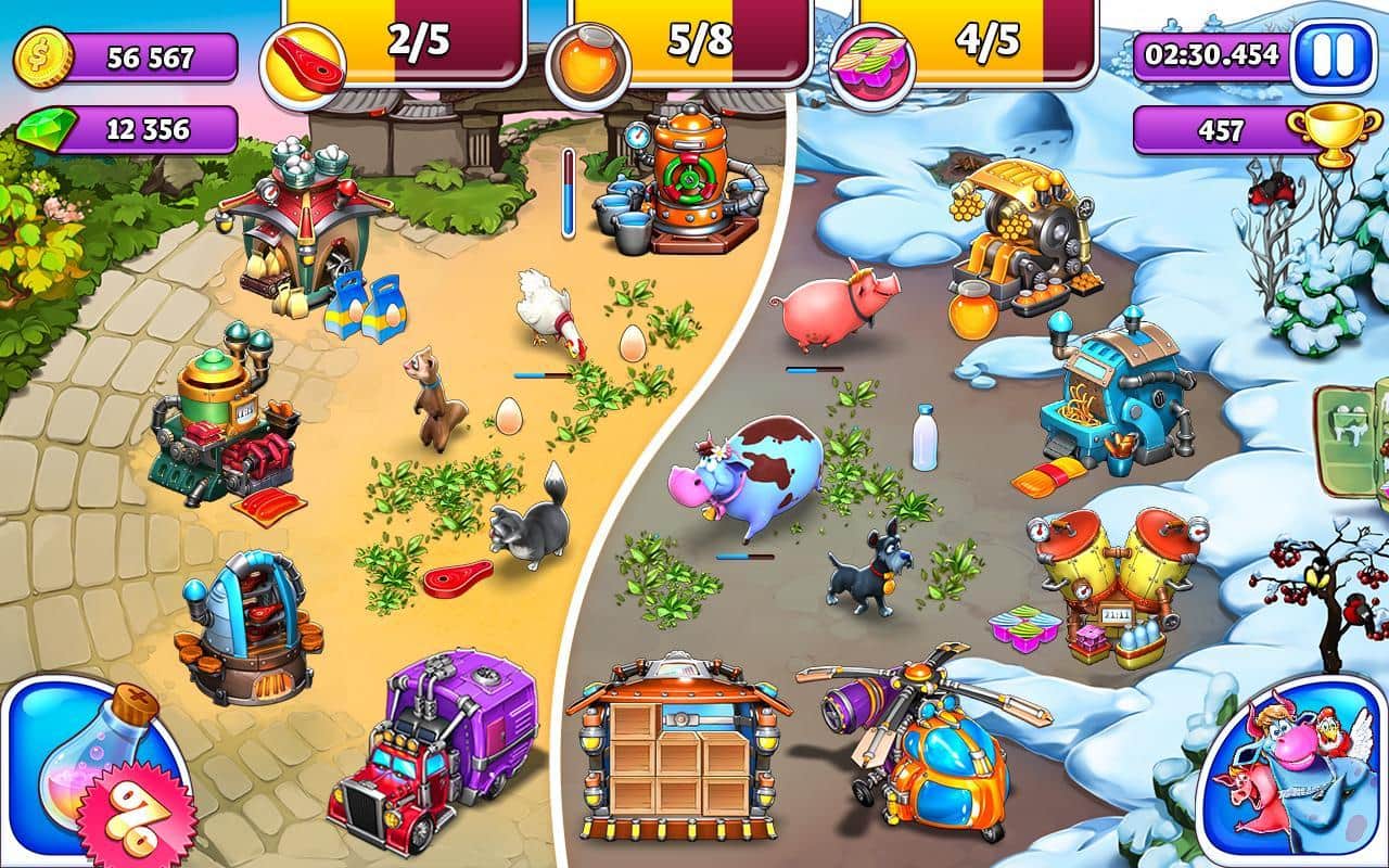 Веселая Ферма - довольно популярная серия игр от студии Alawar в не менее популярном жанре ферма. При создании игры разработчики решили несколько упростить геймплей и придать ему некую казуальность, вам не придется что-то строить или улучшать, весь игровой процесс заключается в том чтобы вовремя нажимать на экран тем самым собирать продукты, отвозить их на склад и затем продавать. Не смотря на кажущуюся простоту игровой механики Веселая Ферма все же завоевала огромную популярность среди почитателей жанра и почему так понимаешь просто запустив игру. Красочная графика, яркая анимация, десятки заданий, уморительные персонажи, простое управление, поддержка русского языка все это уже стало визитной карточкой серии. Новая часть веселой фермы ориентирована на социальную сеть ВК, что позволит вам в большей мере взаимодействовать со своими друзьями и другими игроками, подобный подход заметно влияет на игровой процесс придавая ему совершенно новый вид.