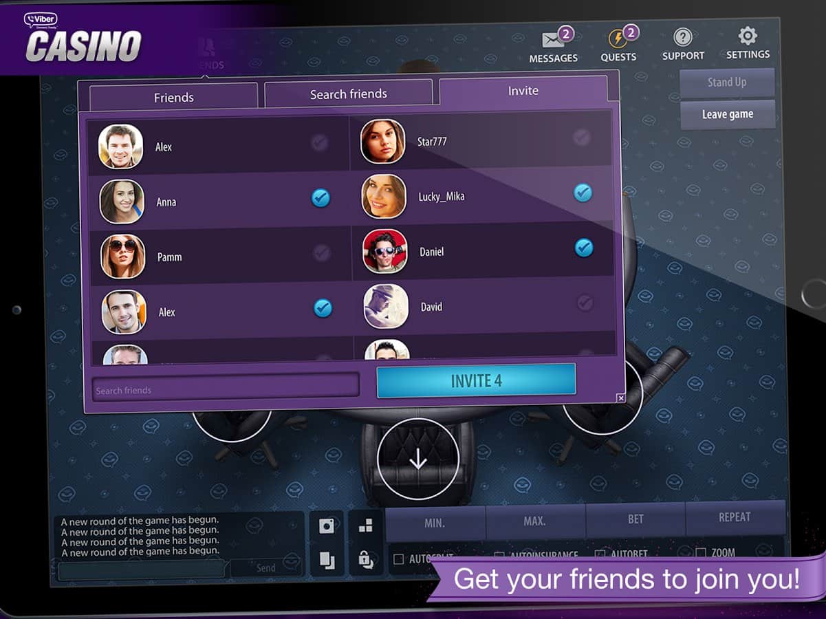 Viber Blackjack – карточная игра на андроид, где вашей задачей будет набрать достаточное количество очков. Берите карты из колоды и собирайте выигрышные комбинации и делайте свои ставки. Положитесь на свою удачу и интуицию в этой игре. Вашей главной задачей будет собрать 21 очко из нужных вам комбинаций, при этом не набрать не нужным вам карт иначе вы проиграете. Играйте со своими друзьями и игроками со всего мира и общайтесь с ними в общем чате. Приглашайте своих друзей за карточный стол и срывайте огромный куш. Выполняйте различные задания и получайте ежедневные бонусы, которые позволят вам выиграть крупный выигрыш.