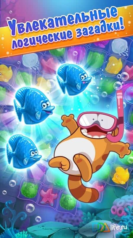 Viber Mermaid Puzzle Match 3 – составляйте ряды из разноцветных рыбок, осьминогов и других морских обитателей. Эта игра перенесет вас на морское дно, где вы познакомитесь с милой русалкой и будете вместе с ней путешествовать по 46 морским мирам. Меняйте местами рыбок и старайтесь составить как можно длиннее ряды из них, чтобы заполучить как можно больше сокровищ и древних артефактов. Применяйте в игре многочисленные усиления и бонусы и устанавливайте свой рекорд в этой игре. Играйте в эту игру со своими друзьями и поднимайтесь все выше в таблице лидеров, занимая первые места.