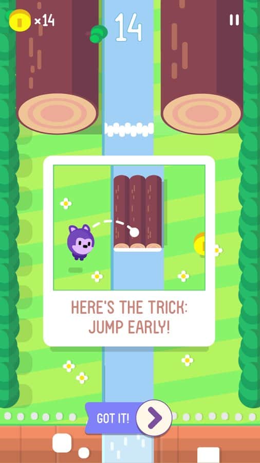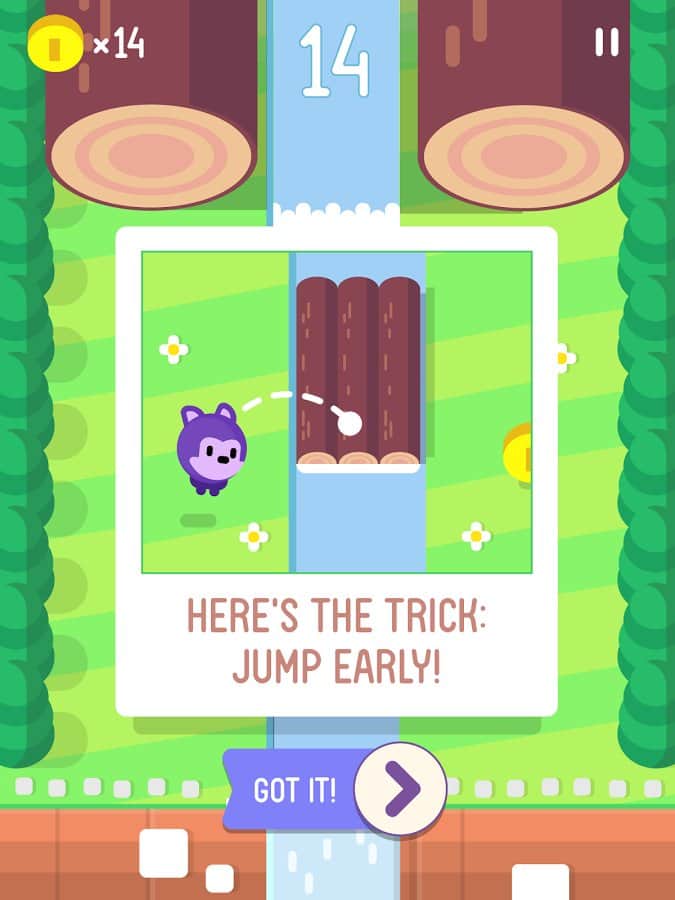 Viber River Jump – помогите милому зверьку перебираться по реке, используя для этих целей плоты. Вашей задачей в этой игре будет прыгать по движущимся по реке плотам с одного берега на другой и обратно. Покажите на деле свои отличные рефлексы и внимание совершая точные прыжки по платам при этом не падая в реку. Не пропустите не одного плывущего по реке плота, иначе бревна находящиеся на суше будут двигаться и вас персонаж, упадет в обрыв. Набирайте достаточное количество очков и соревнуйтесь с друзьями за лучшие результаты. Открывайте новых забавных героев игры и путешествуйте по различным локациям.