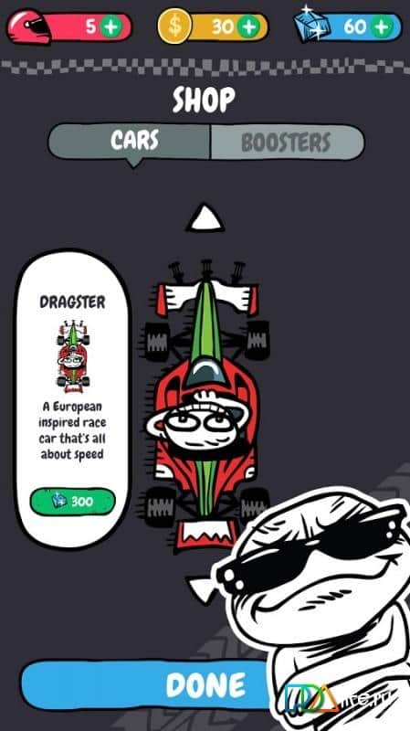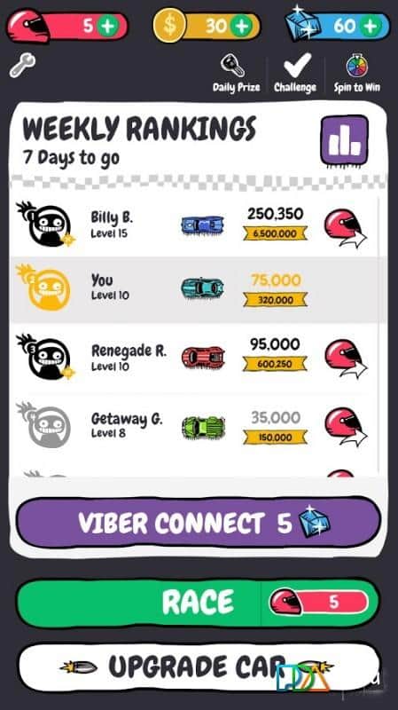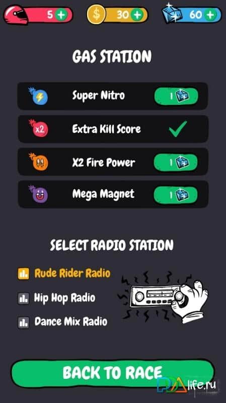 Viber Rude Rider – управляйте бесшабашным водителем, который мчится на огромной скорости по улицам города и взрывает встречные машины. Лавируйте в бесконечном потоке машин и уклоняйтесь от различных преград и препятствий. Обгоняйте встречные машины и соперников и взрывайте их автомобили с помощью пушек и ракет. Не забывайте собирать по пути золотые монетки и кристаллы они пригодятся вам для покупки новых машин и усилений. Применяйте нитро ускоритель и устанавливайте свой рекорд по прохождению трассы. Особенностями игры является оригинальная графика, вид сверху и простое управление.