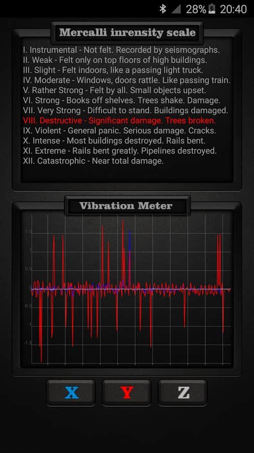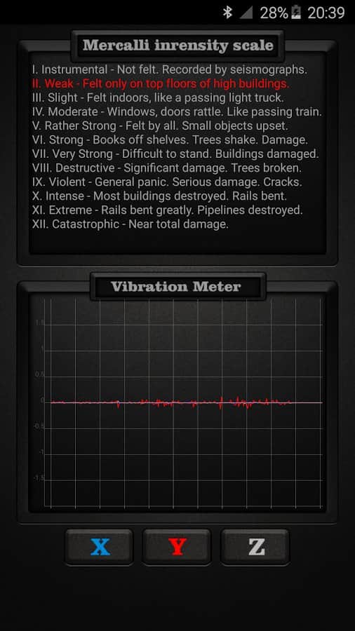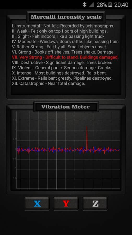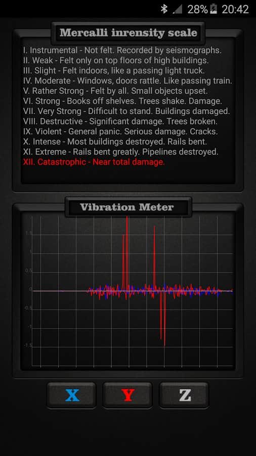 Vibration Meter PRO - С помощью этого приложения вы сможете отслеживать вибрации на любых поверхностях. Оно покажет вам какая их норма, а что из вибраций это настоящее землетрясение. Для работы данного приложения не нужно никаких дополнительных станций, все что нужно это ваш смартфон. Однако работать оно будет только если вы положите его на землю. Оно будет весьма полезно для туристов и тех кто любит подниматься в горы.