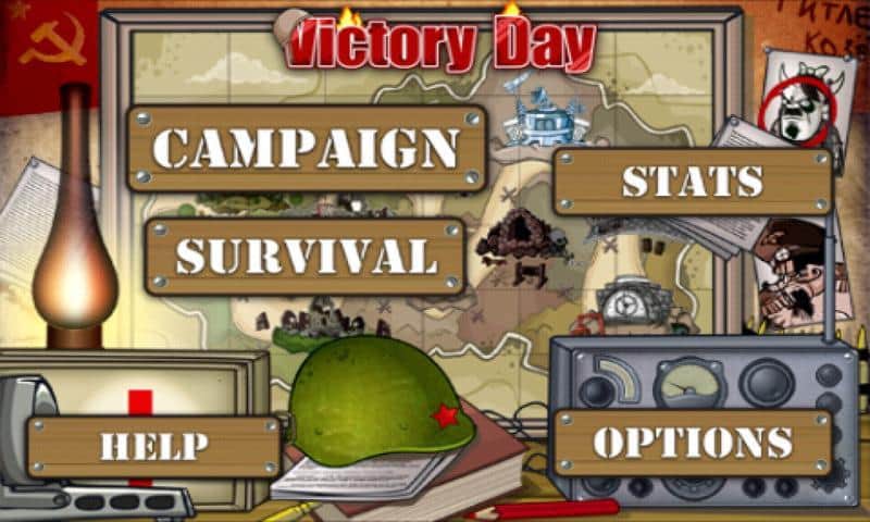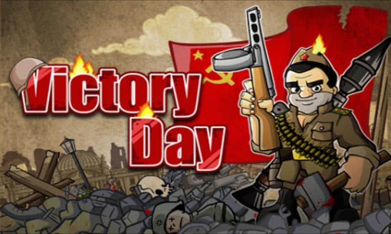 Victory Day - день победы. Время игры - Вторая мировая война. Ваш герой - либо американский солдат, либо русский солдат. Ваша задача - уничтожить все отряды немцев и их командующих. У вас арсенал оружия и гранат, кроме того вам периодически будут сбрасывать оружейный десант на парашюте в виде аптечек и боеприпасов. Ну что ж, вы должны победить всех и вернуться в штаб, чтобы высказать все о тех, кто вас сюда отправил! А так как вашему возмущению нет предела - бойцовский дух еще сильнее... или это запах перегара. вообщем, не важно, главное есть воинственный настрой! А он понадобится для: