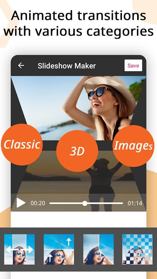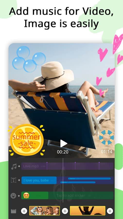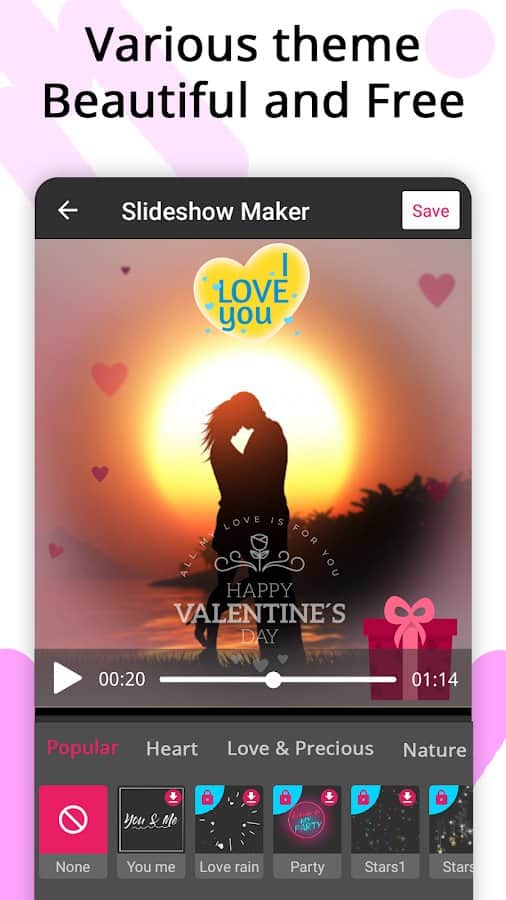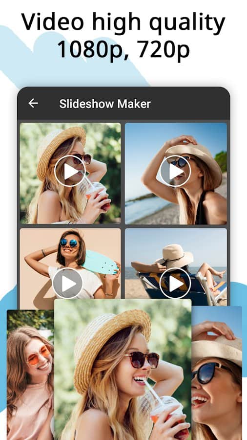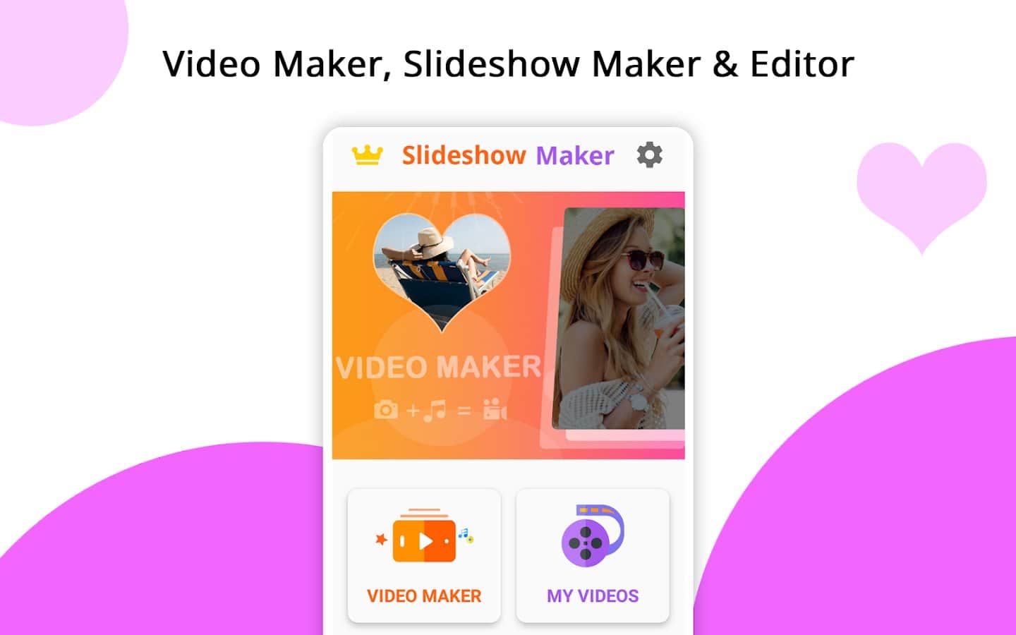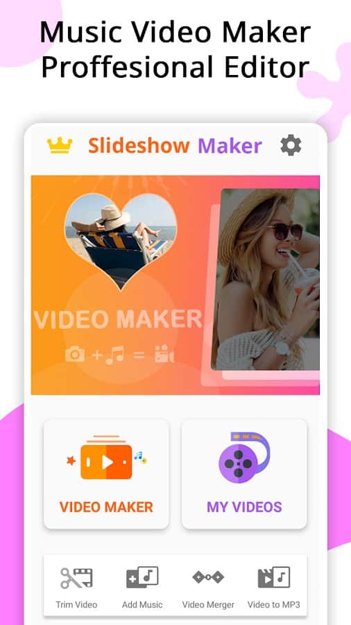 Приложение Video Maker, Video Slideshow Maker поможет вам легко и быстро создавать видеоролики, фотоколлаж или музыкальные клипы, а также редактировать их. Вы сможете создавать видео из фотографий в количестве до 100 штук, выполнять обрезку фото и видео, объединять несколько роликов в один, добавлять к ним аудио и т.д. Создавайте уникальные сюжеты, истории и публикуйте их в популярные соцсети, делитесь с родными и близкими в мессенджерах. Слайд-шоу из фотографий также может удивить друзей и стать ярким элементом воспоминаний из жизни. Выбирайте различные темы (люди, любовь, отношения, дружба), добавляйте эффекты перехода, меняйте время и скорость показа презентации, цвет, стиль, размер, шрифт, тень и другие фильтры, конвертируйте видео и аудио, экспортируйте в высоком качестве.
