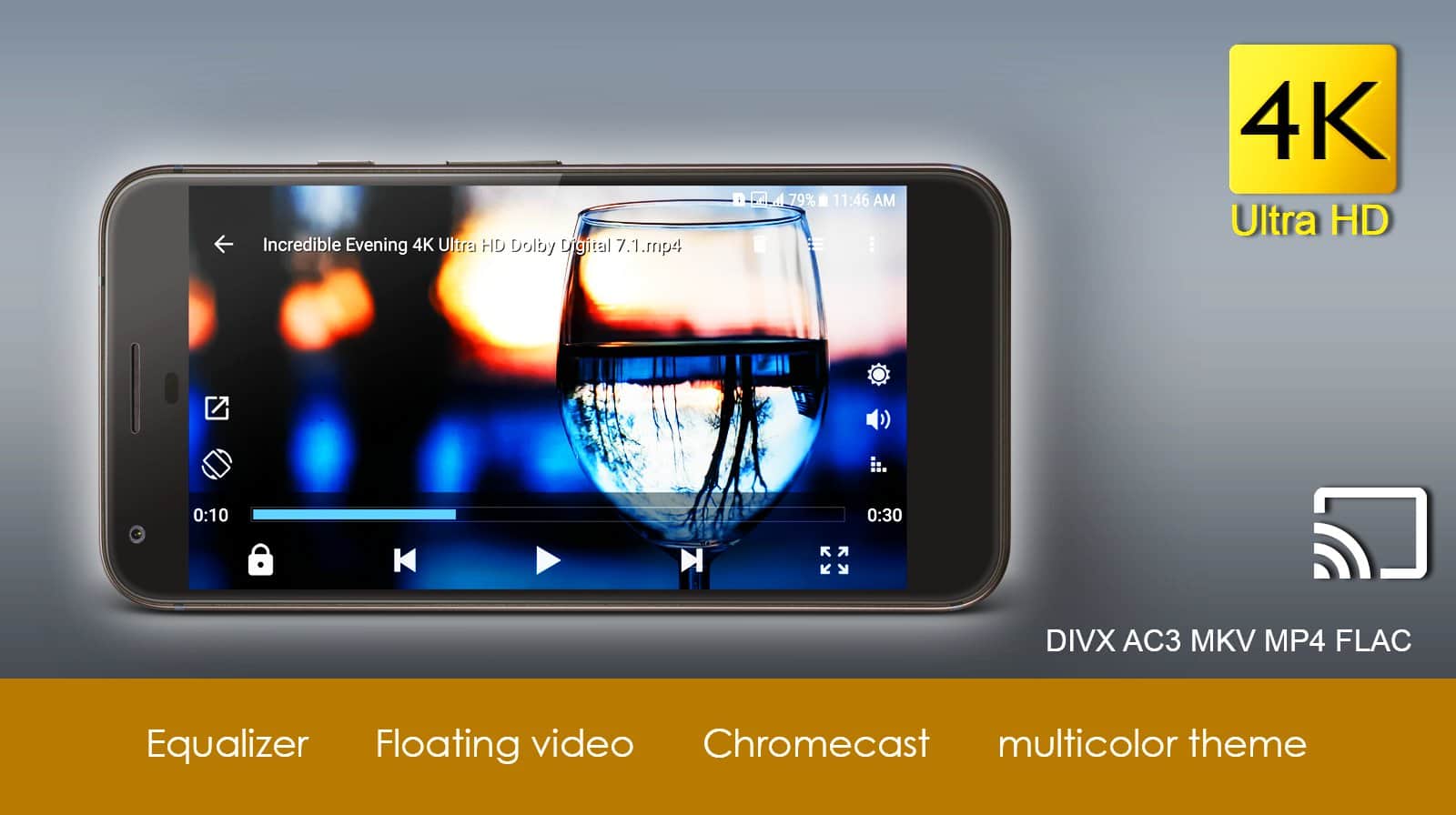 Video Player HD – инновационный видео плеер, способный воспроизводить все самые популярные видео форматы, включая M4V, MOV, MP4, AVI, 3GP, MKV, TS, MPG, WMV, RMVB, FLV. Плеер отлична работает как с файлами расположенными в памяти телефона, так и с видеороликами находящимися на внешней карте памяти или SD карте. Приложение можете быстро найти все ваши видео файлы на телефоне, и предложит просмотреть ихю