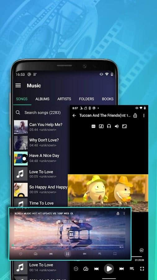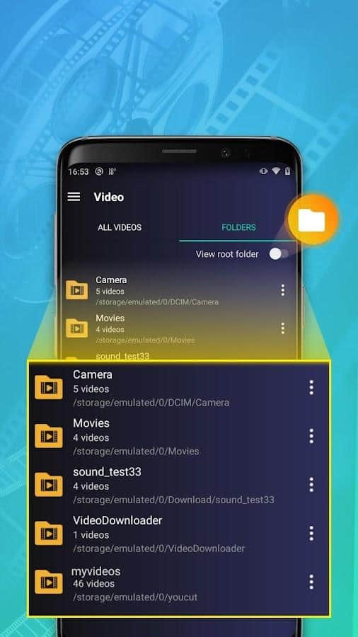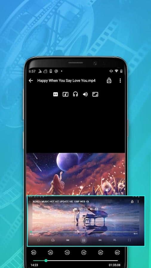 Видео проигрыватель - Произведите видеофайлы на профессиональном уровне в любом поддерживаемом формате: mp4, mp3, avi, wmv, mkv, mov, 3gp. Это приложение поддерживает показ субтитров на различных языках, масштабирование в удобный формат, быструю перемотку назад и вперед на определенное количество секунд, редактирование скорости воспроизведения, автоматическое включение видео с последнего момента просмотра и эквалайзер со многими другими функциями. Выберите понравившуюся тему внешнего оформления приложения и наслаждайтесь просмотрами личных видео.