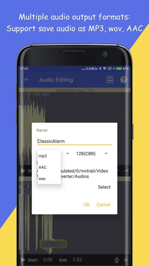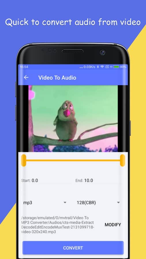 Video To MP3 Converter Pro - Многие из нас слышали крутую музыку на заставке любимого фильма, а потом бежали искать её. Но не всегда удается найти то что нужно, так вот это приложение сможет вырезать любую песню или же мелодию прямо из видео записи! Все что вам нужно сделать для этого, так это выбрать время. К тому же это приложение поддерживает целую кучу различных форматов.