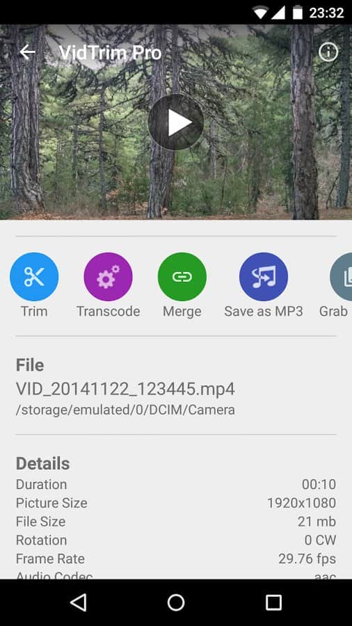 VidTrim Pro - Video Editor – отличный редактор видео для андроид от разработчика Goseet. Используйте эффекты, обрезку, захват кадра и транскодирование, а закончив экспериментировать над видео, поделитесь им со своими друзьями. Хорошей съемки и приятной работы вам с VidTrim Pro - Video Editor.