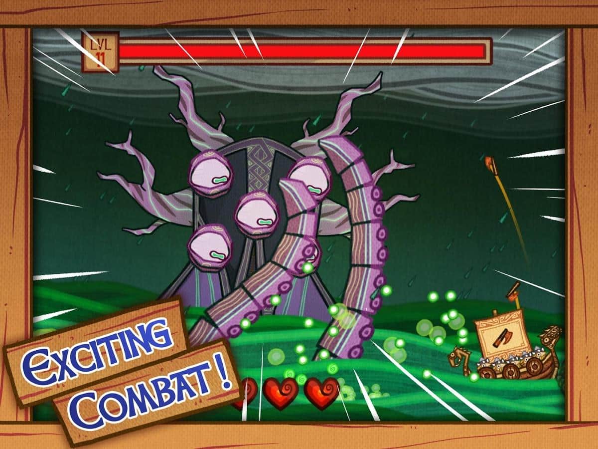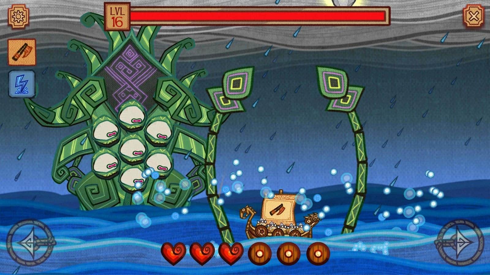 Viking Hunters – увлекательная игра где вы вместе с викингами будете путешествовать по морям и океанам. Наши герои отправились в опасное путешествие, по морям ища сокровища и славу, но на их пути встали ужасные монстры. Вашей задачей будет перемещать драккар викингов из стороны в сторону и помогать им, уклоняться от огромных лам и щупальцев монстров. Побеждайте огромным морских чудовищ и собирайте ценные трофеи после битвы. Бросайте вызов сильным монстрам и положитесь на свою ловкость и силу богов которые не оставят вас в трудной ситуации. Игра порадует вас уникальной графикой, понятным управлением и многочисленными монстрами.