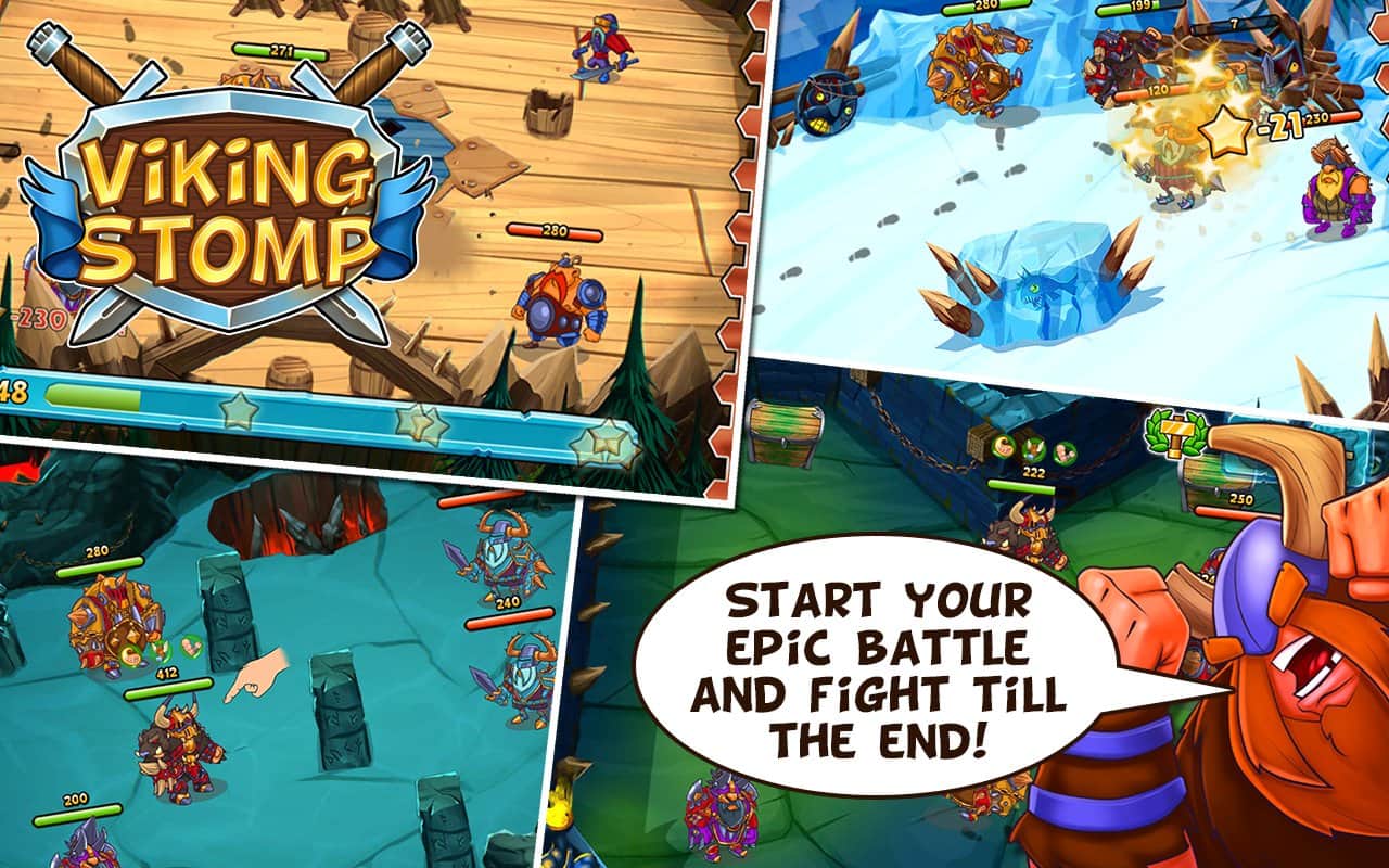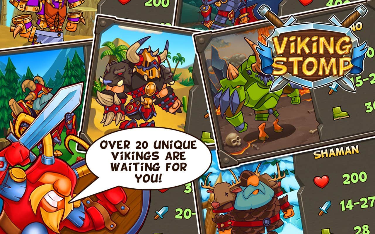 Viking Stomp – в этой игре на андроид, вы сможете управлять непобедимой группой викингов. Высаживайся на дракарах на чужие территории, и постепенно с боями проходим вглубь острова по пути уничтожая всех врагов вставших на вашем пути. В игре приятная прорисовка персонажей, большое количество уровней, и затягивающий геймплей.