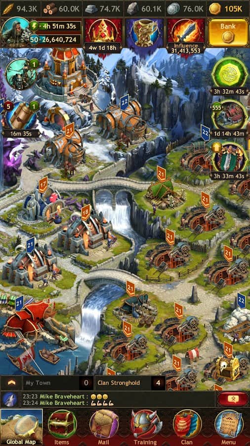 Vikings: War of Clans – стратегия, которая отправит вас в те времена, когда эра викингов была в рассвете и их ждали головокружительные приключения, славные поединки и много золота. Как всем известно, викинги прославились за счёт своих молниеносных и быстрых атаках с моря, которые не только приносили не малую прибыль, но и оставляли после себя разграбленные посёлки и много убитых. В данный момент вам необходимо построить свой защищённый форт с полной инфраструктурой, домами, тренировочными центрами и другими постройками. Станьте мудрым и мужественным Ярлом вошедшим в учебники истории.