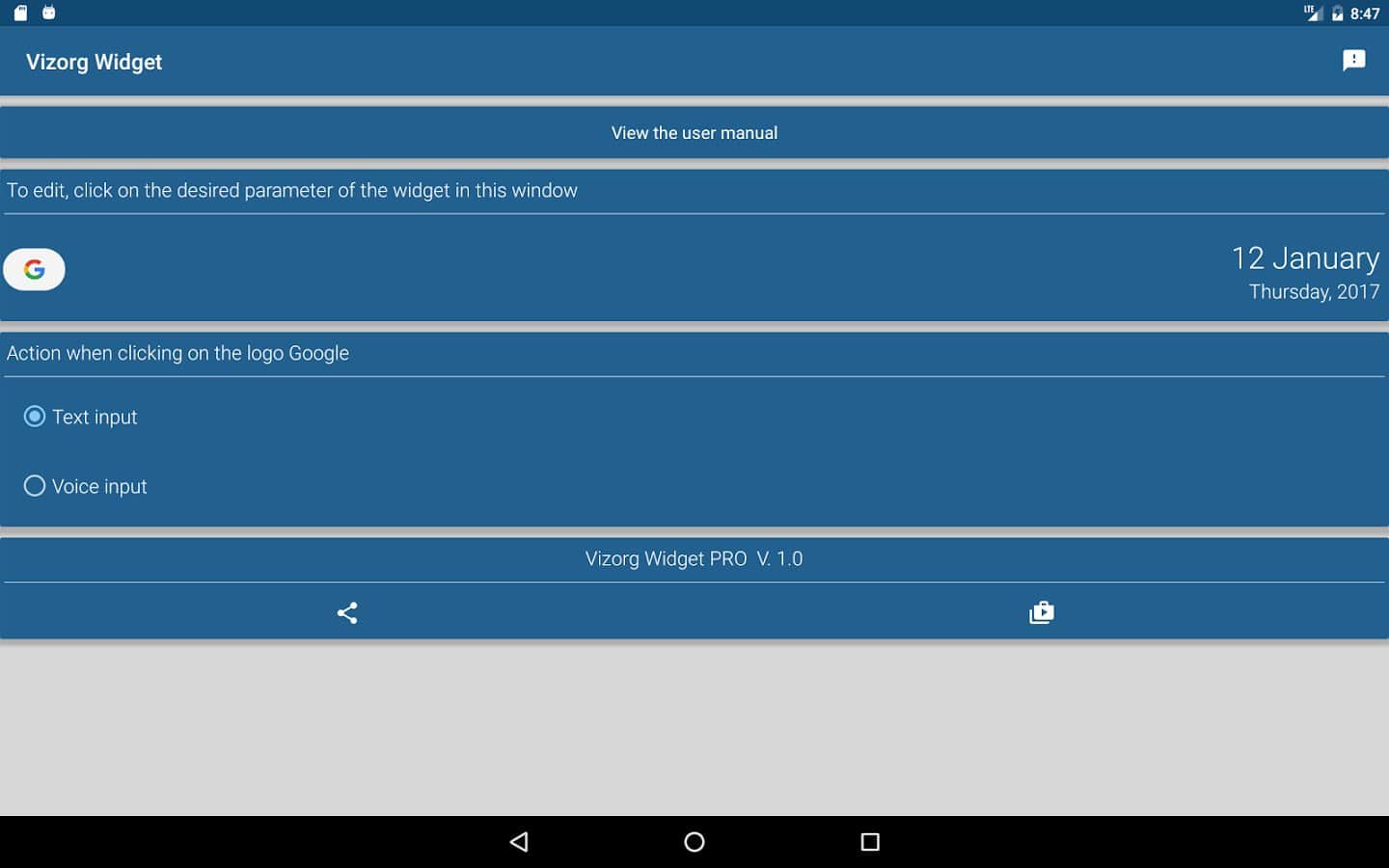 Vizorg Widget - отличный виджет на андроид устройство, которое имитирует стиль поискового виджета Pixel Launcher. Виджет отлично работает на разных лаунчерах и не возникнем ни каких проблем. Вы сможете полностью настроить стиль виджета, чтобы хоть немного иметь уникальный рабочий стол своего андроид девайса.