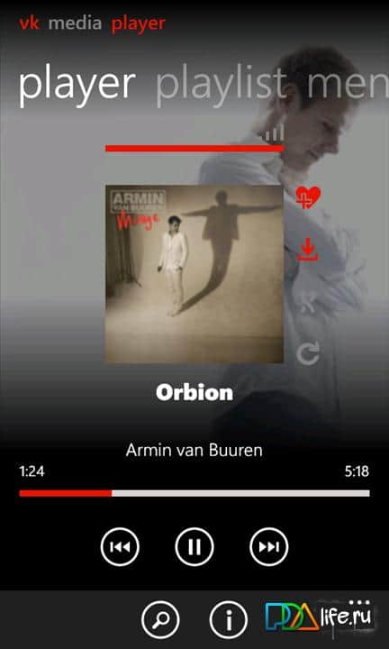 VK Media Player - приложение для проигрывания музыки от популярной социальной сети Вконтакте. Учетная запись из Вконтакте используется для входа в приложение.