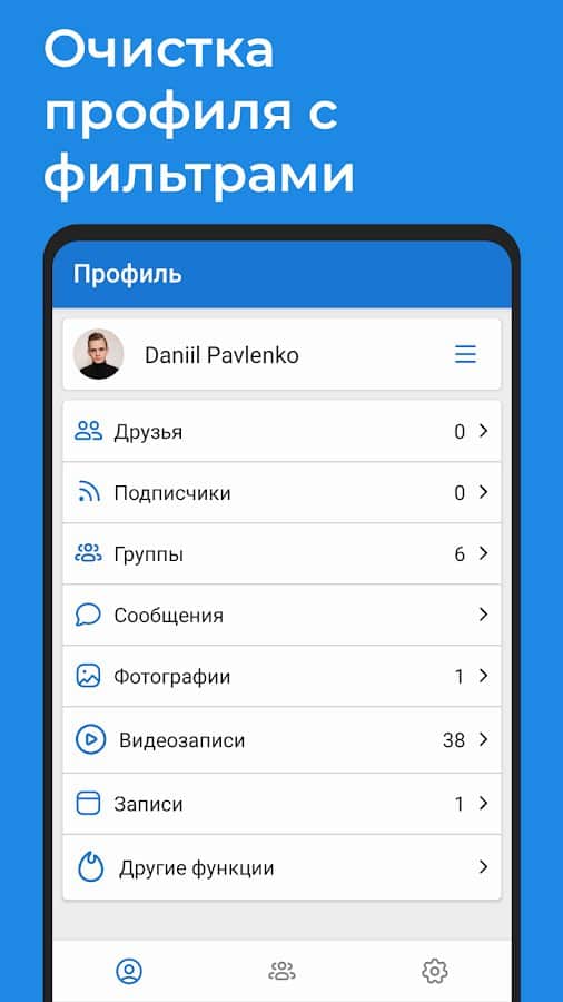 Часто выполнение однообразных и рутинных действий в социальной сети ВК по удалению друзей, подписчиков, сообществ, сообщений и других ненужных фильтров сильно тяготит и отнимает массу времени. с приложением VKHelper можно удалить весь "мусор" и ненужные данные в пару кликов на экран. программа подходит для для обычных пользователей, так и для администраторов сообществ. Вы сможете: очистить друзей по различным параметрам, отменить все исходящие заявки в друзья, отметить их просмотренными, удалить подписчиков, перевести их в друзья в одно нажатие, удалить диалоги, сообщества, массово выйти из бесед, создать индивидуальный чат, очистить все фотографии или видеозаписи в выбранном альбоме, восстановить записи на своей стене и т.д.