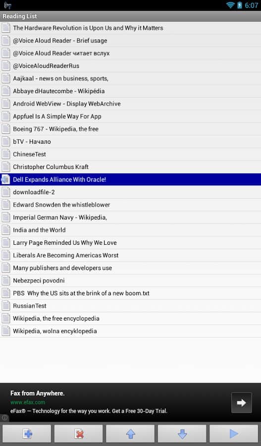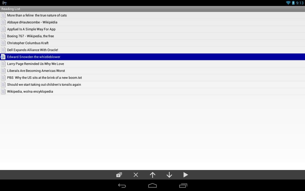 - Сохранение в файлы открытых в @Voice статей для прослушивания в дальнейшем. Создание списков статей для их непрерывного прослушивания одной за другой. При необходимости списки можно сортировать, например, чтобы поместить в начало самые важные статьи.
