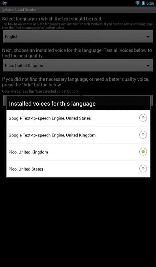 Voice Aloud Reader – весьма удобное приложение для андроид устройств, которое прочитает для вас вслух любые тексты, новости, книги, смс, одним словом все что угодно, благодаря использованию системного TTS. Следовательно для этого в вашем устройстве должны быть установлены движок-синтезатор речи и голоса, которые можно установить их из пакетов Play Store Acapela, Ivona или SVOX TTS.