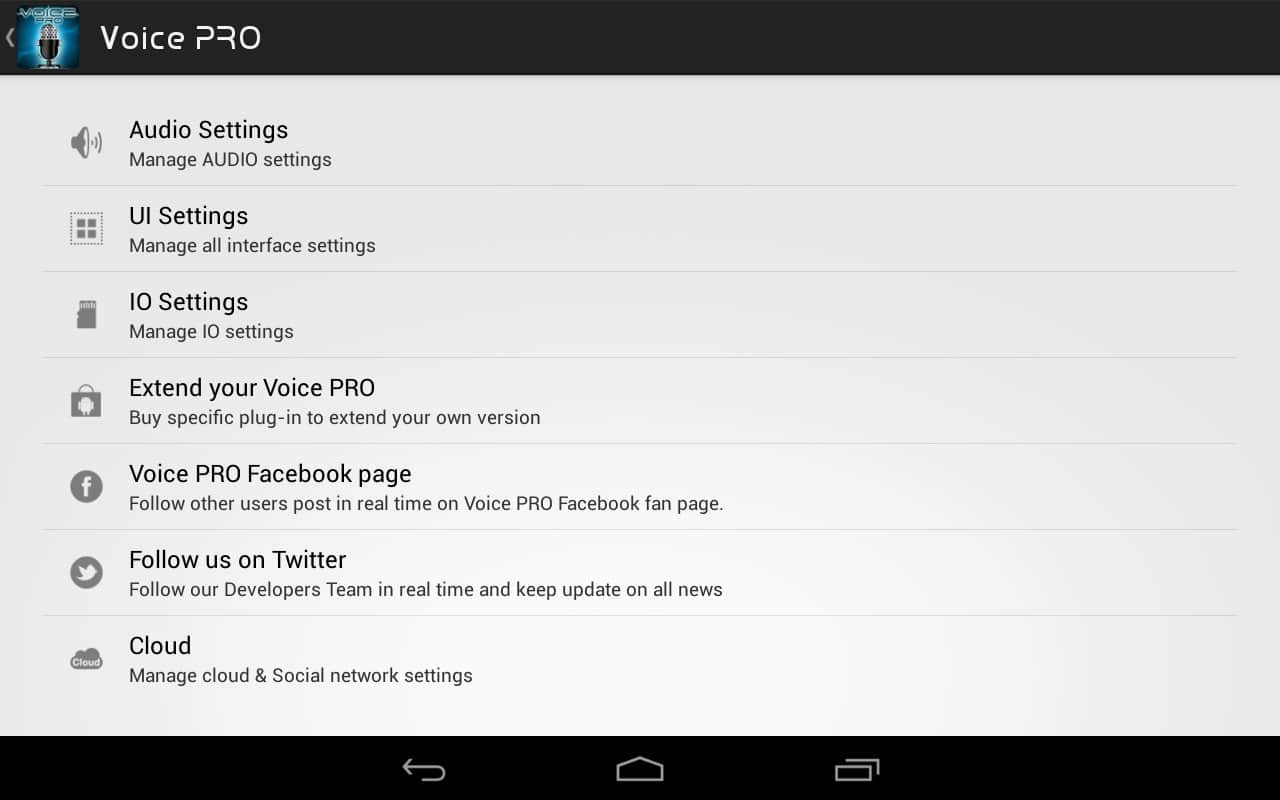- Преобразовывать ваши записи в текст, Voice PRO является единственным приложением на Маркете, которое преобразует ваши записи любого размера в текст, с возможностью прослушать внутренним синтезатором речи и сохранять их в аудио-формате. В конце концов, ваш голос становится синтезированым.