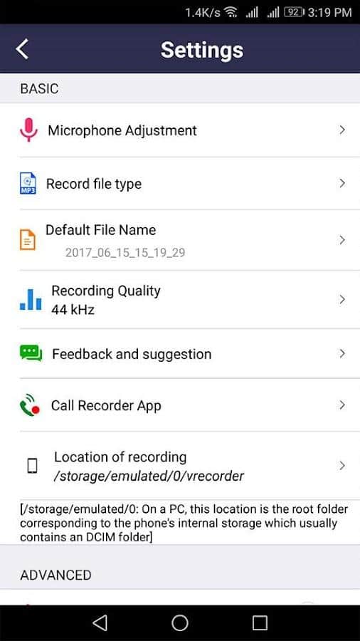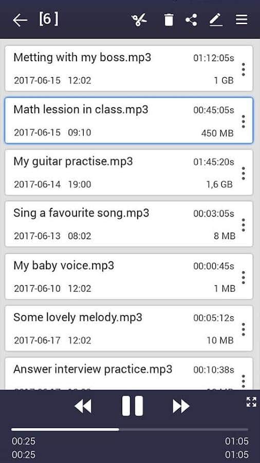 Voice recorder - Не важно в какой ситуации вам понадобился диктофон для записи голоса или определенного звука, но он должен быть оснащен необходимыми возможностями и удобным интерфейсом для использования, как это все сделано внутри приложения. Оно работает как в фоновом, обычном, так и совместном режиме, поэтому в полученной аудиозаписи будет минимальный уровень шума или помех, так как приложение сохраняет кодирование с дискретизацией 8-44 кГц. Хранить записи можно как на SD-карте, так и во внутренней памяти с индивидуальными названиями.