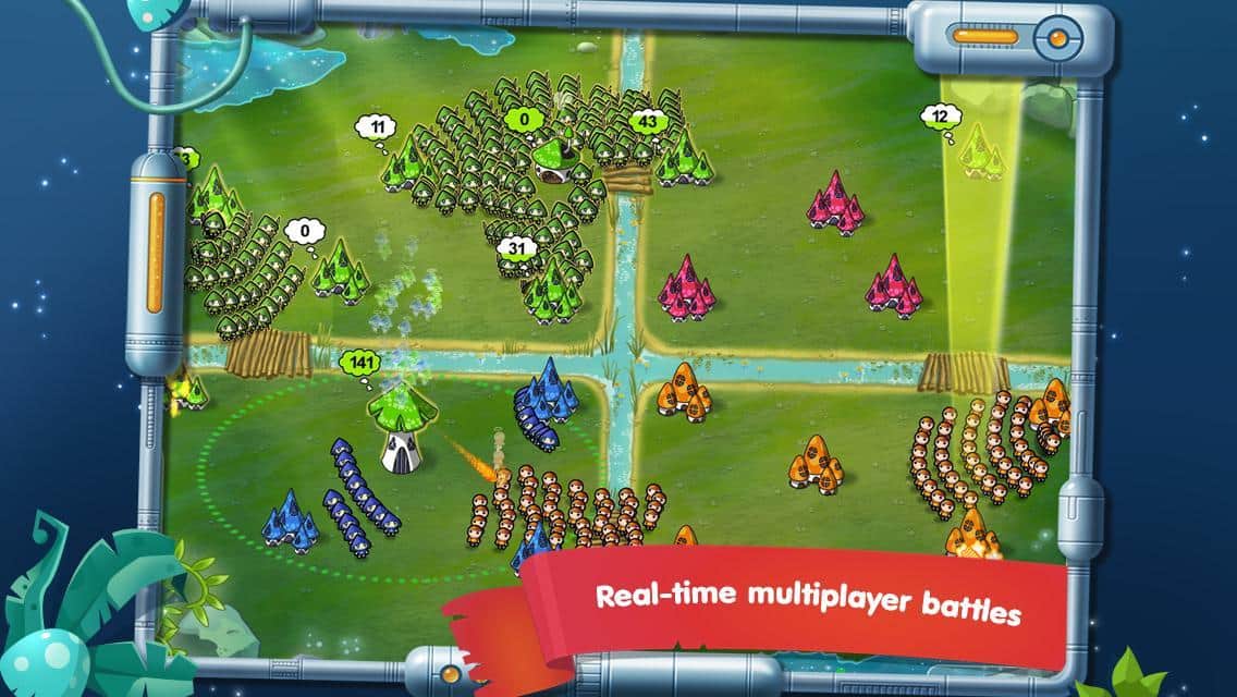 Война Грибов: В Космос! - продолжение стратегии на андроид, в которой вы возглавите грибной народ и поведете его к победе в космосе. Захватывающее приключение, где вам предстоит побывать на других неизведанных планетах и сразиться там с инопланетными цивилизациями. В этой игре вас ждут разнообразные карты, новые игровые механизмы и различные инопланетные технологии. Играйте со своими друзьями или другими игроками одновременно, сразитесь в турнирах, и поднимайтесь вверх в таблице лидеров.