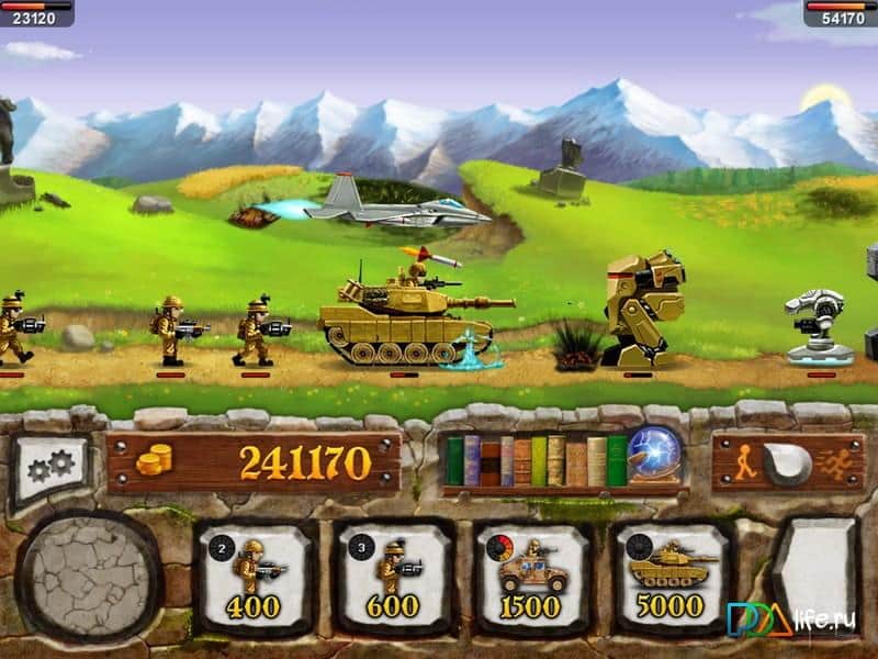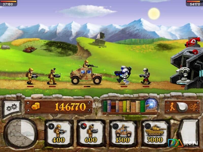 Войны 2. Эволюция. The Wars 2 - игра в которой вам предстоит вести сражения с неприятелем, начиная с каменного века и заканчивая недалёким будущим. В вашем распоряжении бойцы и техника различных эпох. В игре можно увидеть как боевых динозавров так и сверхзвуковые истребители. Ваша главная цель - дойти до базы врага и уничтожить её. Уничтожайте вражеских врагов, зарабатывайте деньги и на них улучшайте свою армию и достичь безоговорочной победы над врагом.