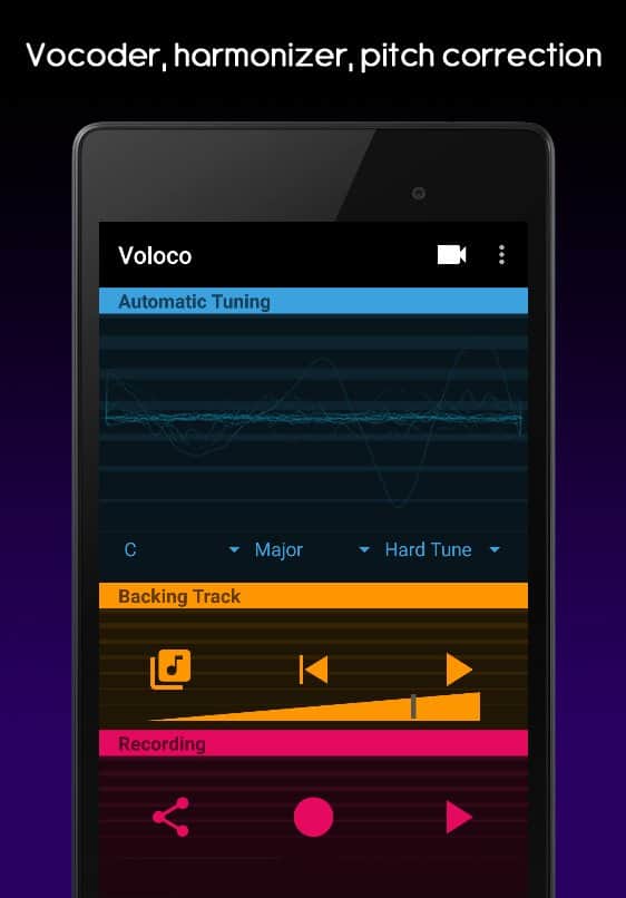 Вместе с Voloco: Auto Tune вы сможете отредактировать свои вокальные данные, настроить тон, кодирование и гармонизацию при пении в караоке.