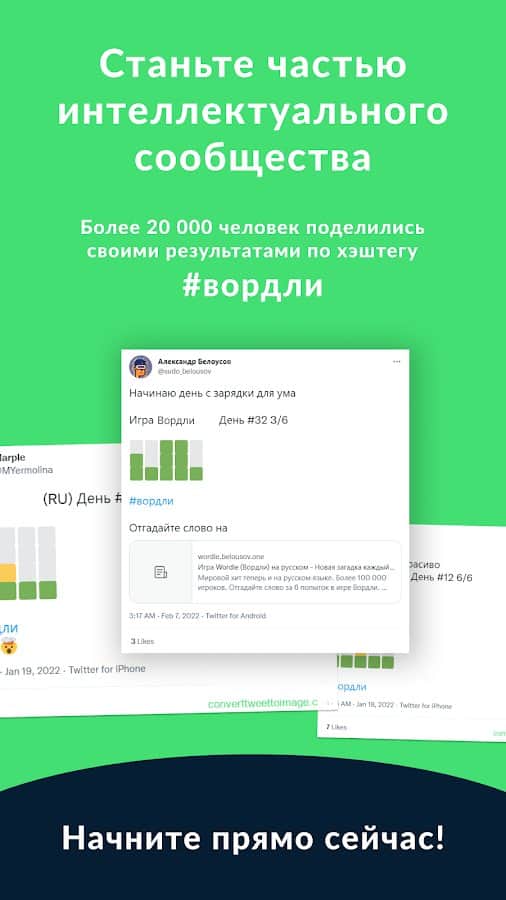 Wordle RU - знаменитая словесная головоломка не даст заскучать. Суть ее проста, вам предстоит отгадать слово из пяти букв, на разгадку дается шесть попыток. С каждой попыткой высвечиваются буквы, которые находятся в секретном слове. Если вы угадали букву, но эта буква стоит в другом месте, то она подсвечивается желтым маркером. А ежели удалось угадать и букву, и место этой буквы в слове, то она будет окрашена в зеленый цвет. Чем меньше попыток вы использовали, тем выше бал! В игре реализована возможность играть с друзьями – вы можете посылать друг другу слова загадки!