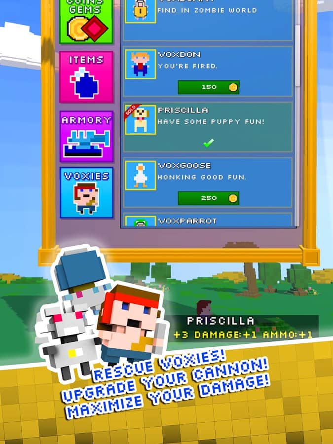VOXPLODE 2 - пиксельная экшен аркада изначально вышедшая на платформе iOS и получившая массу положительных отзывов от игроков. И вот пришло время и владельцев Андроид устройств. Сюжет игры повествует о некой группе кубических друзей, отправившихся на пикник и все бы ничего, но наши герои решили устроиться на территории кладбища, с какой целью сюжет умалчивает. Конечно же местные обитатели, мертвецы, зомби и прочая нечисть не обрадовались тому, что их покой был нарушен и тут же организовали массовое нападение на нежданных гостей. Но наши кубические друзья тоже оказались не лыком шиты и прихватили на пикник серьезную пушку при помощи которой вам и предстоит уничтожать все не живое и спасти друзей да и самого себя.