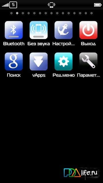 - Iphone Style Menu (множество прокручиваемых столов со всеми приложениями телефона, таким образом отпадает надобность тандартного меню как такового)