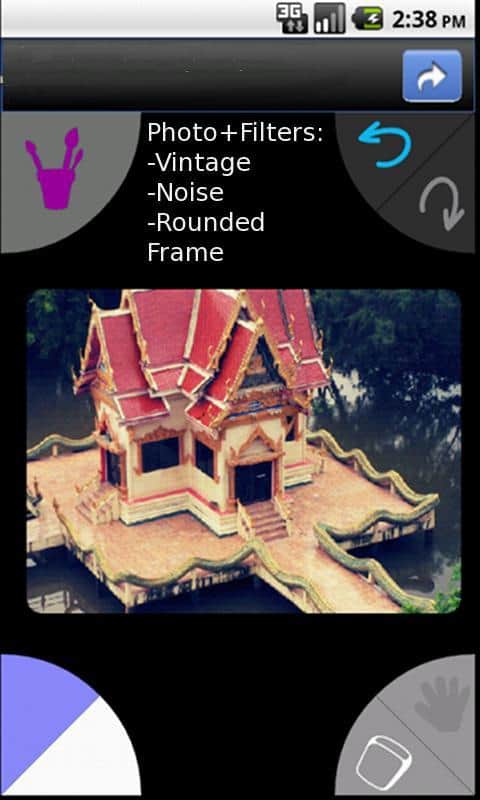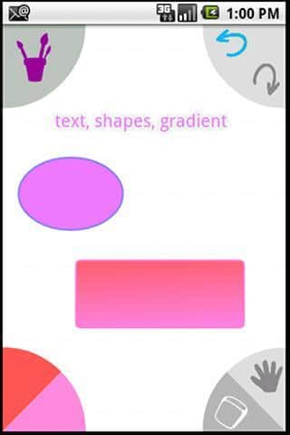 Приложение для Андроид, в котором можно рисовать. Инструменты: -обычная кисть (учитывает давление пальца или стилуса, скетч стиль) -балончик -ластик -размытие -заливка(сплошная и градиент) -фильтры (черно-белый, негатив, яркость, выбранный цвет) -линия (прямая и безье) -фигуры (прямоугольник, эллипс и прямоугольник с закругленными краями -текcт Для зумирования изображения используется мультитач. Есть функция отменить/повторить (для бесплатной версии только 4 раза) Максимальный размер изображение для редактирования 1280*1280 На планшетах с Андроид 3.х (Honeycomb) идет в полноэкранном режиме