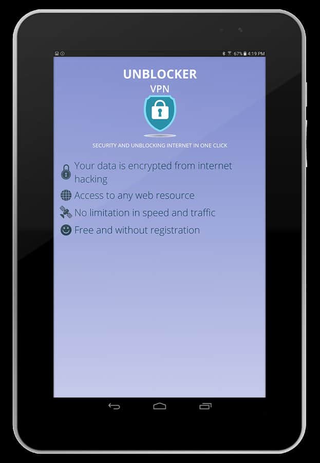 VPN Unblocker FREE - Unlimited - Забудьте о любых преградах в интернете, с этим приложением вы сможете получить доступ куда угодно, если даже там стоит блокировка на ваш регион. VPN, это самый простой и удобный способ обезопасить себя от посторонних в сети интернет. С помощью этого приложения вы не только скроете свое настоящее местоположение, но и обезопасите передачу данных. Работает оно довольно просто, всего в пару нажатий вы измените местоположение на необходимое вам, и сможете посещать закрытые ресурсы.