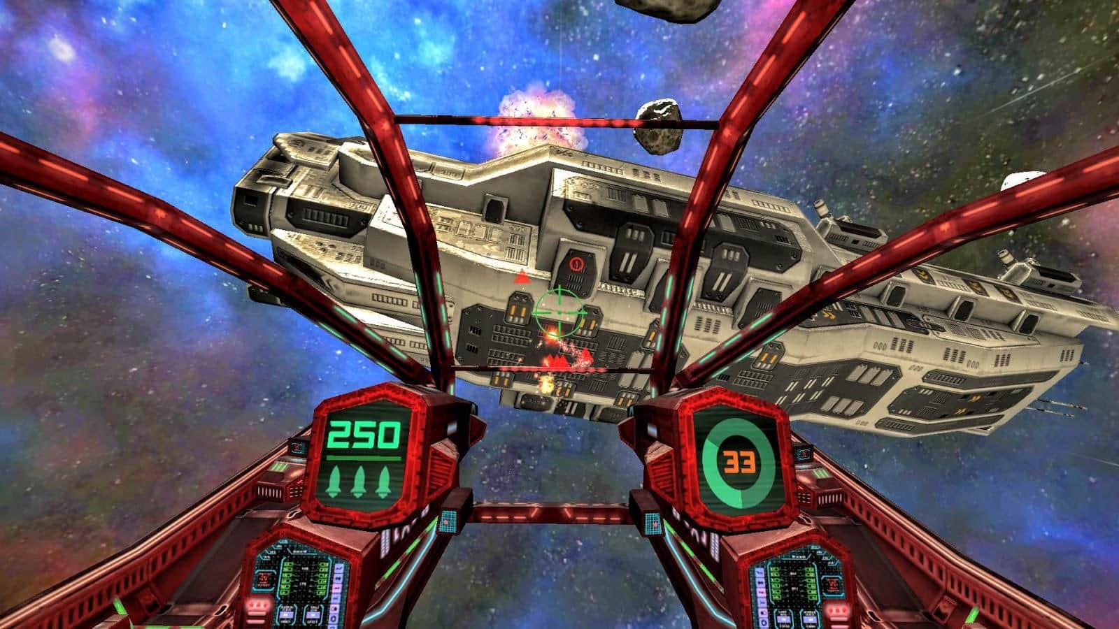 VR Space: The Last Mission – космическая аркада от первого лица на андроид, где вы погрузитесь в виртуальную реальность. Откройте для себя увлекательную игру, где вы будете наслаждаться отличной 3D графикой и будете участвовать в эпических перестрелках космических кораблей. Вы единственный воин из всей эскадры которому повезло выжить в опасных перестрелках, и теперь вы последняя надежда человечества на спасение. Управляйте космическим кораблем и ведите его в бой против сотен врагов и сильных боссов, которых не так просто будет победить.