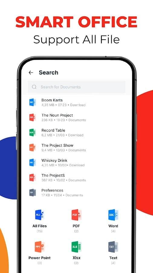 Приложение для чтения и просмотра документов: многофункциональное приложение для чтения документов. Это интеллектуальное приложение из офисного пакета, которое поможет вам открывать файлы и просматривать PDF. Оно поможет вам прочитать все документы на вашем мобильном телефоне. Вам не нужно использовать компьютер, просто используйте мобильный телефон для управления всеми файлами и открытия документов в форматах PDF, PPT, XLS, TXT или WORD.