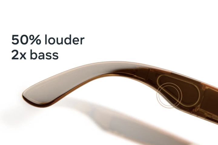 Устройство укомплектовано камерой на 12 Мп (она расположена справа, тогда как левое отверстие — светодиод-индикатор съемки), а встроенные динамики позволяют им заменить наушники. Хотя динамики стали на 50% громче, звук из них будет слышен только владельцу благодаря специальной конструкции. Качественная голосовая связь и запись пространственного звучания реализованы благодаря набору из пяти микрофонов.