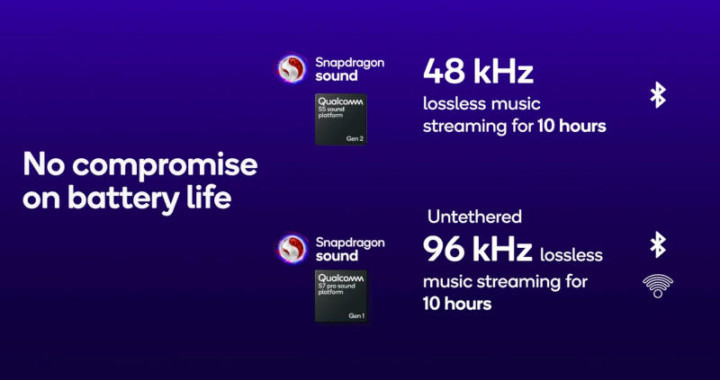 Фирменная платформа Snapdragon Sound предлагает 24-битное звучание с частотой 48 кГц, тогда как при подключении по Wi-Fi частоту дискретизации можно увеличить до 96 кГц. Среди партнеров программы Snapdragon Sound числятся Audio-Technica, Bose, Edifier, Fiio, Jabra, LG, Master & Dynamic, Shure и другие бренды.