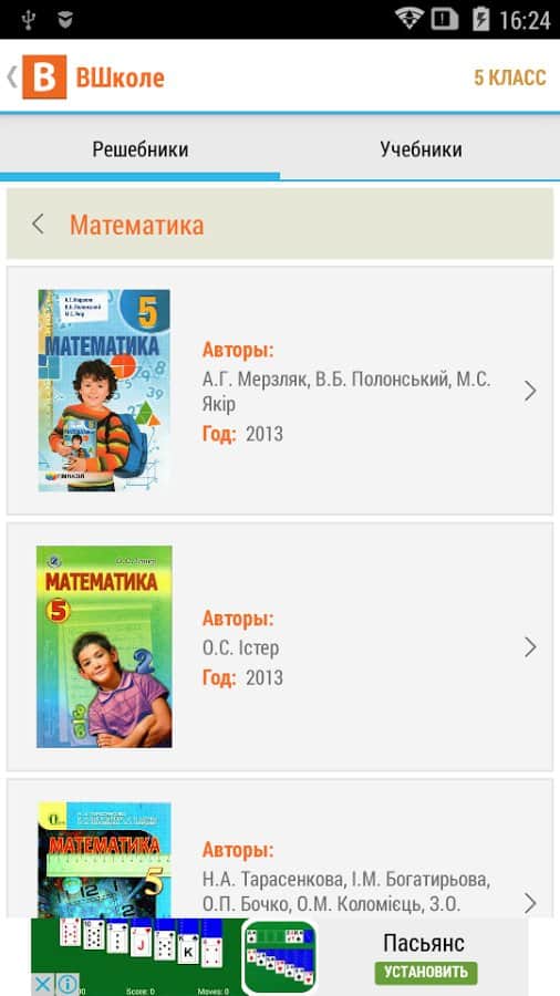 Вшколе - ГДЗ - над этим приложением работал один из самых крупных порталов для школьников с множеством решебников на любой вкус, и по любому предмету. Здесь вы сможете найти решебник для своей школьной программы при этом не прилагать особых усилий, или же не покупать настоящий решебник. Все что вам нужно это скачать данное приложение, выбрать свой класс и найти нужную вам книгу, а далее вы увидите решебник на все задания по предмету.