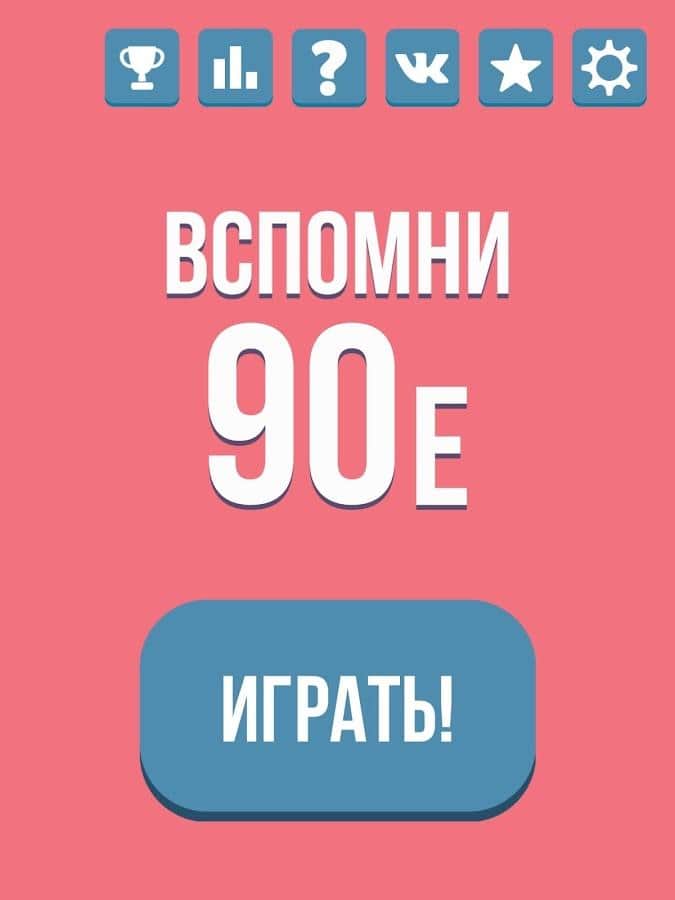 Вспомни 90-е - Не большая викторина на ваши устройства, которая сможет на некоторое время вернуть вас в детство, поможет вспомнить ваши любимый сериалы, фильмы, героев и конечно же не забываемые игрушки. Так же поможет более молодому поколению больше и лучше узнать, чем же интересовались их старшие братья, сестры или же родители.