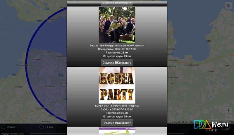Встречи Вконтакте Вокруг – полезное приложение, целью которого является поиск развлечений и встреч созданных в Вконтакте по всему миру. Не пропустите события, будьте в курсе всего, что происходит в вашем городе и не только, станьте участником мероприятий. Приятных поисков и отличного времяпровождения.