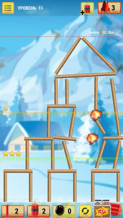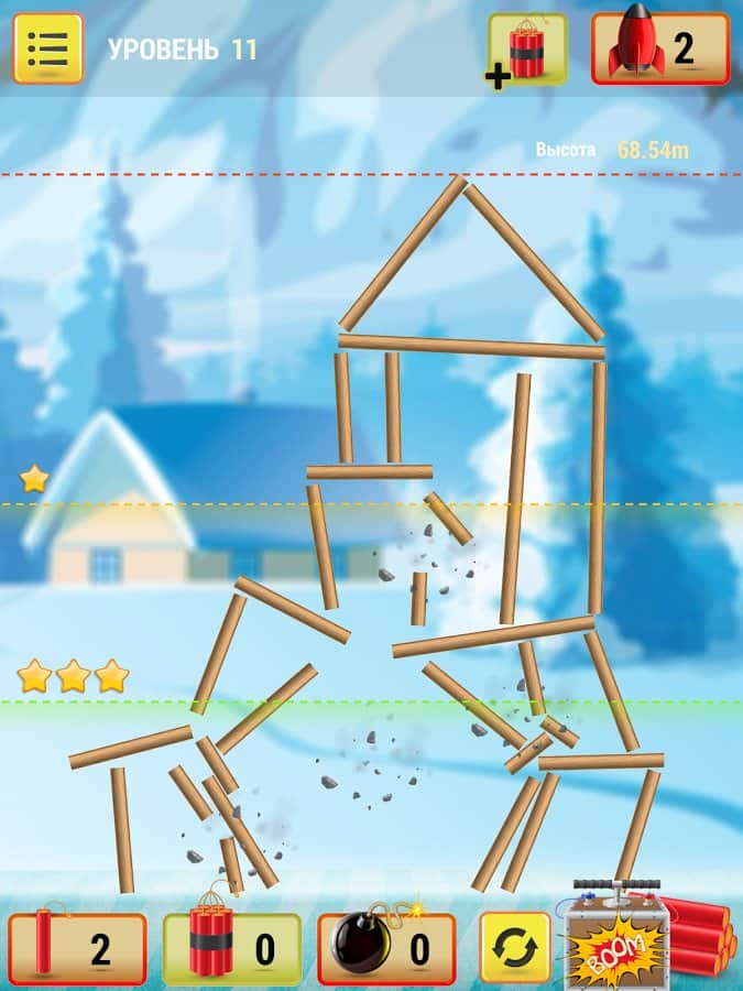 Взрыватель / Demolition - веселая аркада на андроид, в которой вы выступаете в роли подрывника. Вам будут даваться различные здания, сделанные из разных материалов, а также взрывчатка в ограниченных количествах и ваша задача состоит в том, чтобы разрушить здание до основания. С каждым уровнем сложность будет только увеличиваться, где вам предстоит рассчитать угол падения обломков так, чтобы они упали в строго отведенное место. Разрушайте здания в более чем 80 уровнях с различными локациями.