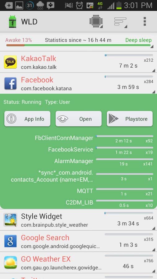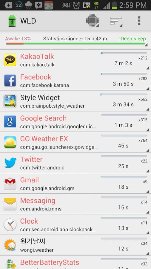 Wakelock Detector призван собирать статистику по таким пробуждениям помогает определить, что именно не дает вашему смартфону “уснуть" и, соответственно, нерационально использует заряд батареи. Полученные данные можно просматривать, систематизируя по различным параметрам, а изучив результаты, вы сможете решить, что делать с пожирателями заряда дальше. Кстати, еcли вы действительно хотите получить корректную статистику, оставьте смартфон с запущенным приложением в покое хотя бы на пару часов.