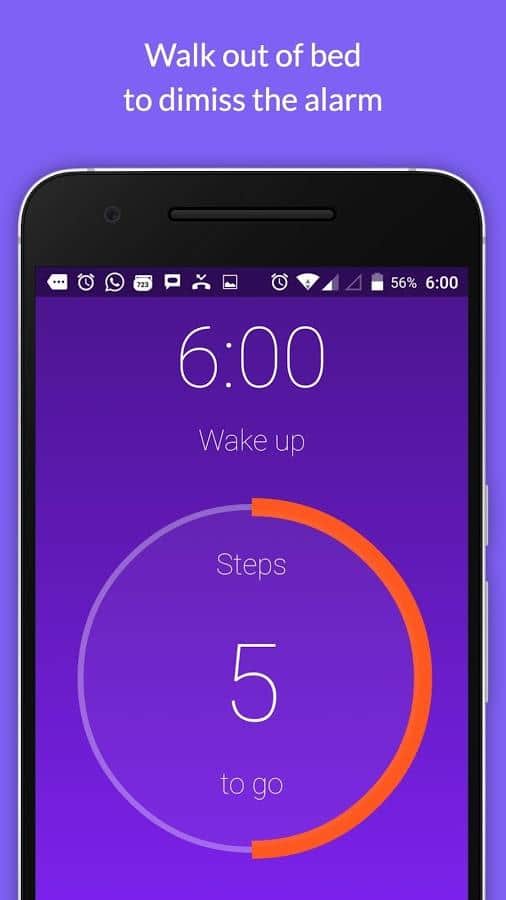 Walk Me Up! Будильник – замечательный будильник для тех, кто любит крепко поспать, несмотря на звуковой сигнал своего устройства. Walk Me Up! прекращает звуковой сигнал лишь тогда, когда вы пройдете определенное количество шагов к его отключению, так что проснуться окончательно вам таки придется!