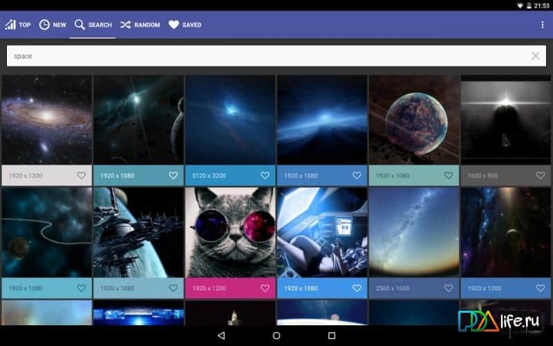 Если уж искать красивые обои для рабочего стола, то делать это лучше в не менее красивом приложении, каковым и является Wally. Программа выполнена в стиле Material Design и сочетает прекрасный внятный интерфейс с красивыми анимациями и отличную функциональность: кроме собственно просмотра коллекций обоев, можно отметить, какие категории вы хотите видеть, а какие вам не интересны, изучить топ, новинки, поискать желаемые изображения по ключевым словам, а в отдельной вкладке еще раз вернуться к понравившимся картинкам. Но главное преимущество приложения - здесь можно найти массу изображений в качестве FullHD и QuadHD, то есть рассчитанных под экраны современных смартфонов.
