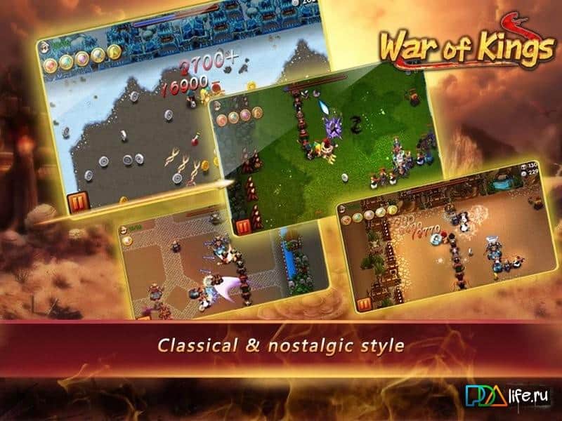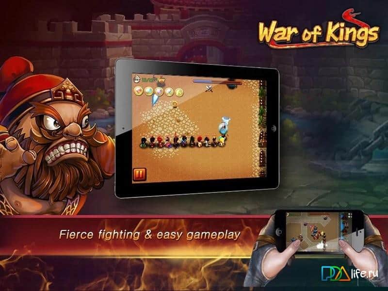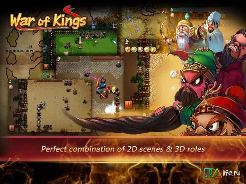War of Kings - Интересная стратегия на андроид с простым геймплеем и таким же не сложным управлением. Ваши войска, а также противники, будут выходить из двух противоположных точек. Ваша задача направлять их в правильном направлении, чтобы они смогли отразить атаку. Всего в игре шестнадцать различных героев с боевыми, а также магическими, способностями. Игра не очень сложна, поэтому подойдет даже для детей.