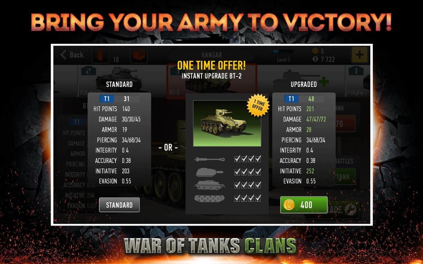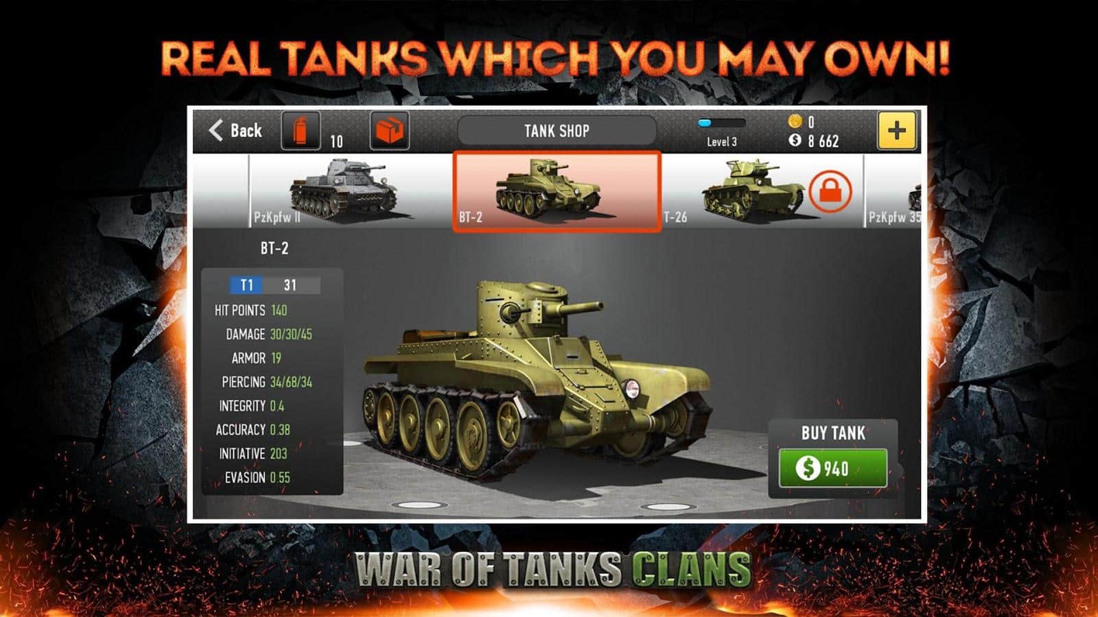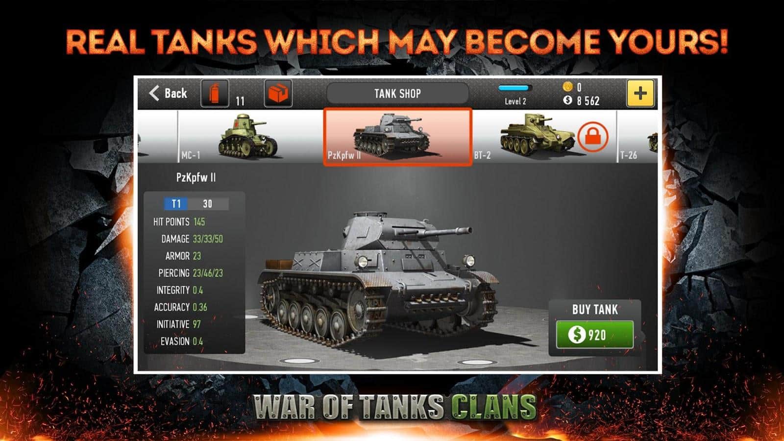 War of Tanks: Clans - танковая стратегия на андроид, времен Второй мировой войны. В этой игре вы возьмете под свое командование огромные танки и поведете их к победе. Вас ждут 5 режимов игры один, из которых является онлайн, где вы сможете собрать компанию из восьми танков и направить всю эту мощь на врага. Участвуйте в шести рейдах подряд и получайте за это уникальные чертежи танков, которые помогут вам собрать универсальные танки. Сражайтесь в смертельных боях, зарабатывайте очки и открывайте для себя новые танки и легендарный тяжелый Черчиль.