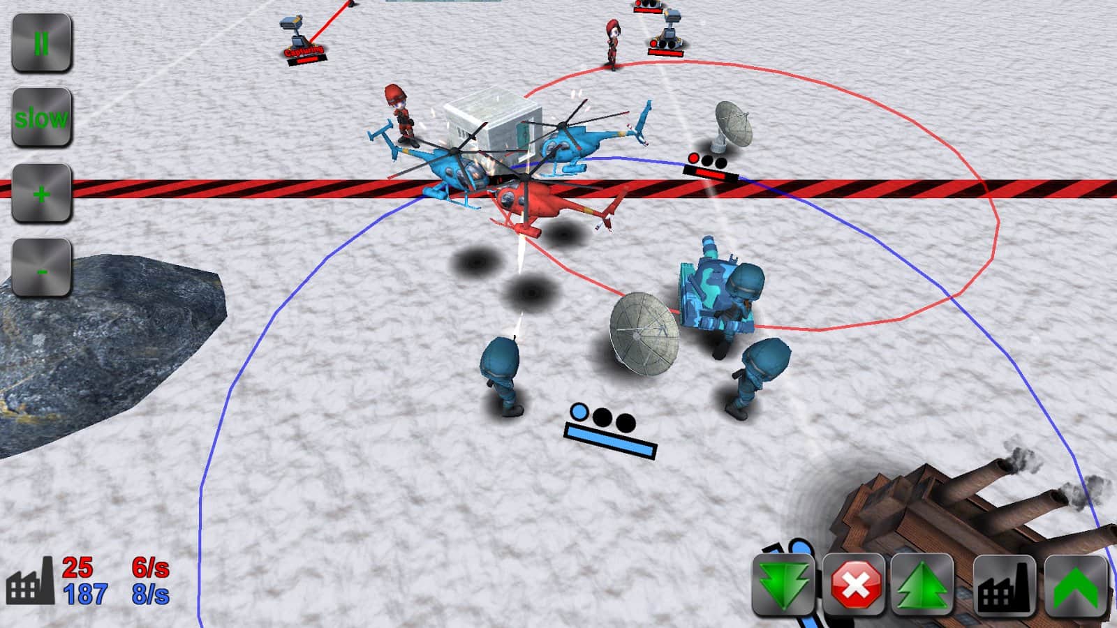 WAR! Showdown - стратегия реального времени на андроид. Бросьте вызов врагу в захватывающих сражениях! Захватывайте фабрики, минометы, и многое другое, чтобы увеличить свой запас ресурсов и укрепить свою обороноспособность. Захватите базу врага для полной победы, при этом не забываем про защиту своей. В игре 91 уровней, которые проходят на различных территориях: поля, пустыни, замороженной тундры и каменистой местности на протяжении 4 кампаний. Будьте агрессивны и молниеносны, только так вы сможете показать всему миру, кто здесь хозяин. Правильная тактика, и превосходство в военной мощи даст вам преимущество перед многими врагами.