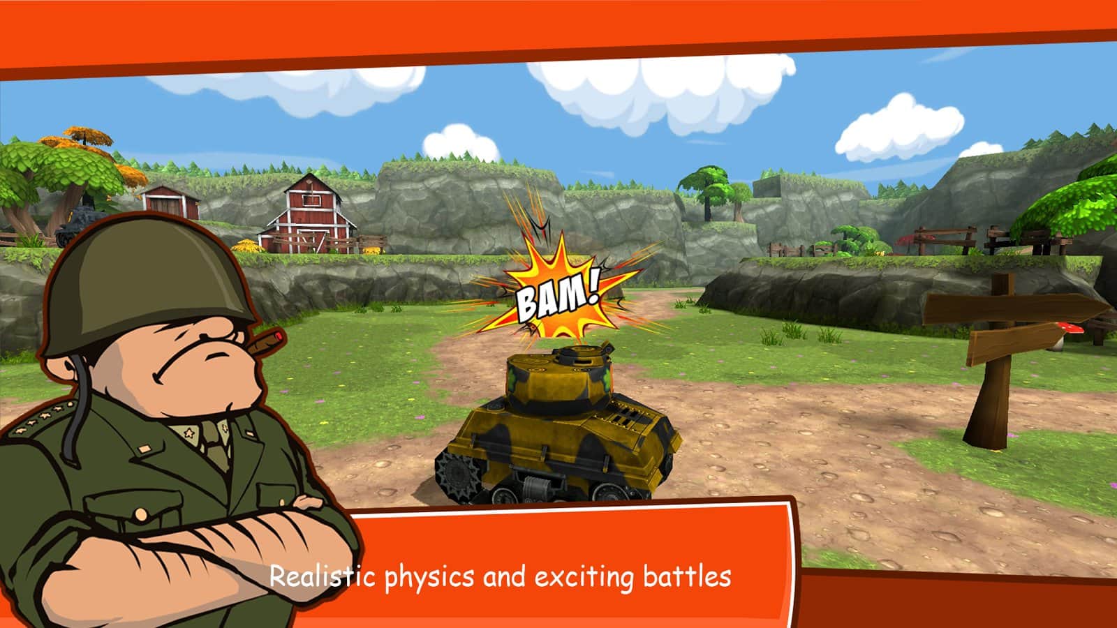 War Toon – танковые баталии выполненные в ярком анимационном, мультяшном стиле и происходящие в режиме реального времени. Рёв моторов опасные противники и жажда к победе ждёт вас. Различные локации и возможность усовершенствования своей боевой техники, делает игру ещё более увлекательной и интересной. В игре можно выбрать режим командного боя или индивидуальный поединок. Чем активнее ты играешь тем больше опыта зарабатываешь. Со временем можно создать свой клан. После чего игра станет ещё более интересная и увлекательная. В игре присутствует система рейтингов и таблица лидеров.