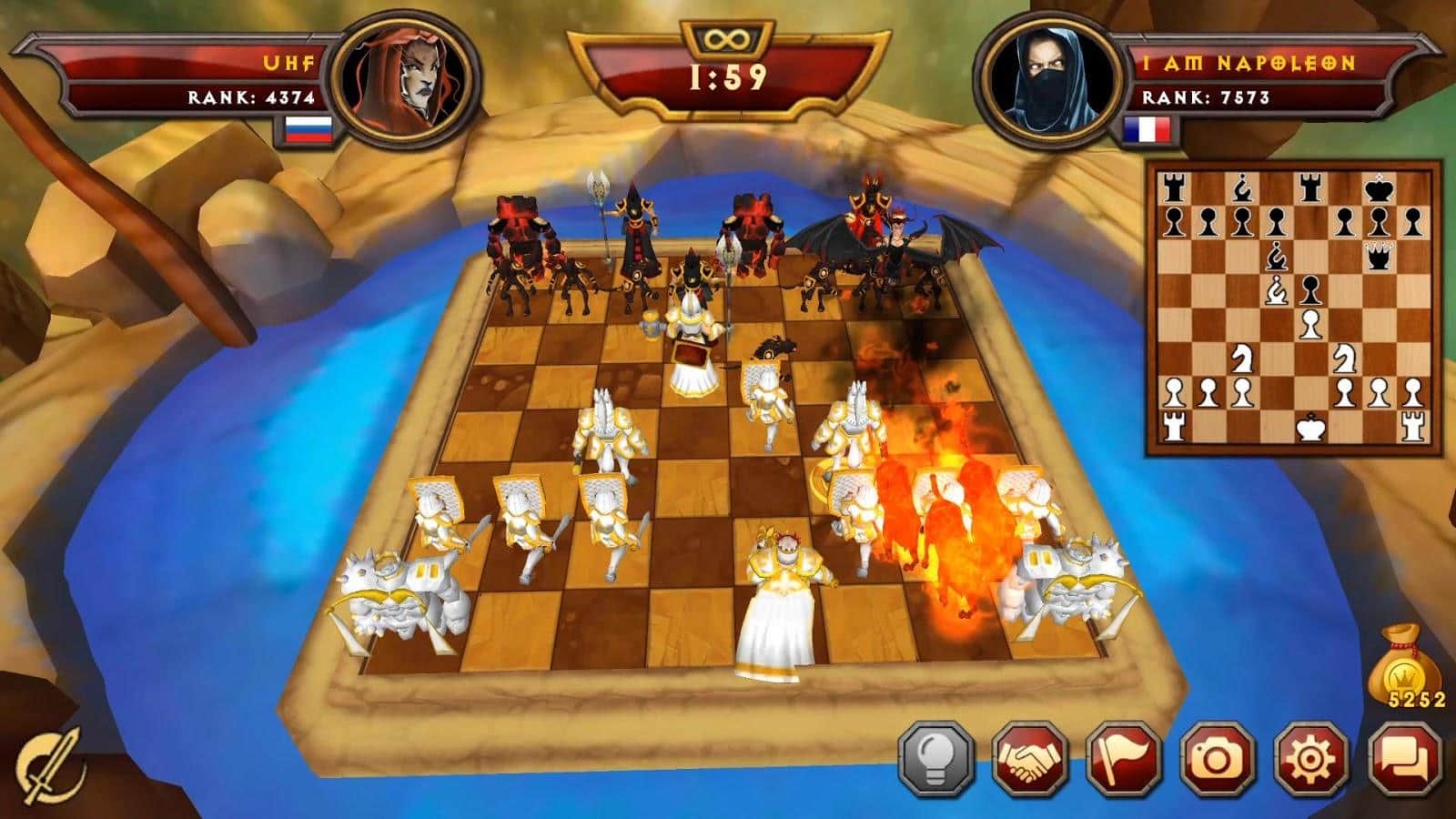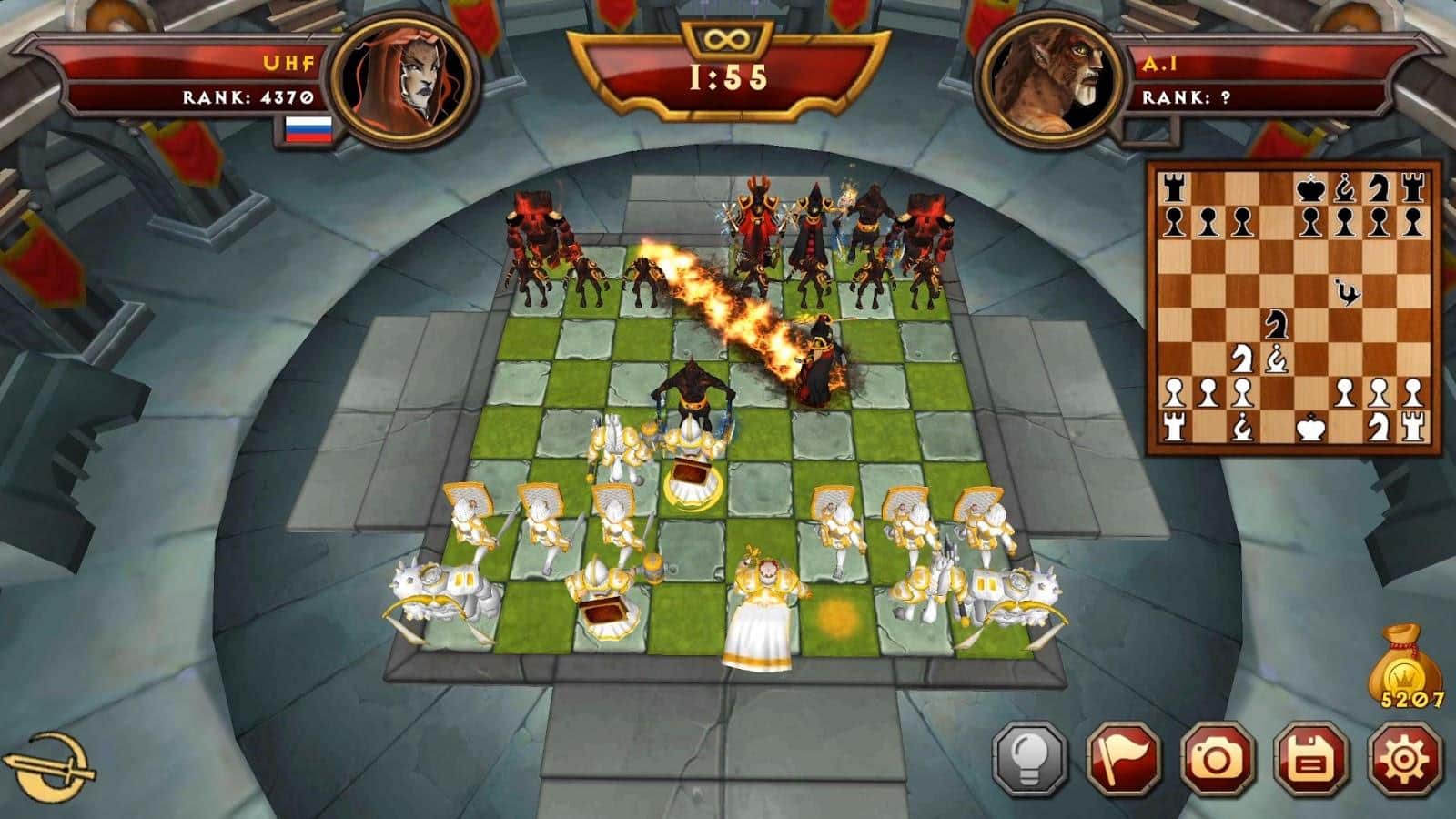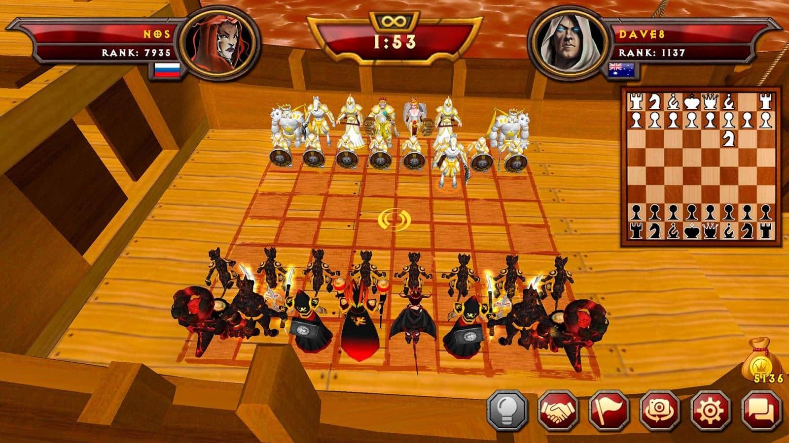 Warfare Chess 2 – увлекательная настольная игра, где вы будете играть в шахматы. В этой игре вашей задачей будет перемещать волшебные фигурки по шахматной доске и вступать с соперниками в поединки. Тщательно продумывайте каждый свой шаг и старайтесь заманить своего соперника в ловушку. Тренируйте свой интеллект и сообразительность перемещая по полю анимированные фигурки, вступая в зрелищные бои с соперниками. Старайтесь победить всех врагов и захватить как можно больше клеток шахматной доски. Тренируйтесь играя против компьютерного оппонента или бросайте вызов реальным игрокам со всего мира.