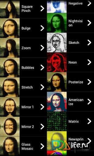 WarpCam PRO – прикольная программа для вашего андроид устройства от разработчика Jonathan Dimond. WarpCam PRO, использовав большое количество прикольных эффектов деформации и цветового решения, исказит ваше лицо в реальном времени на картинке. Приложение может вызвать не только положительные эмоции, но и негативные у людей, не имеющих чувства юмора. Среди эффектов, есть такие как: Pinch, дуга, Zoom, пузыри, зеркало, квадрат, вода, B & W, эскиз, неон, пастеризация и многое другое. Веселых экспериментов и хорошего чувства юмора вам и вашим друзьям.